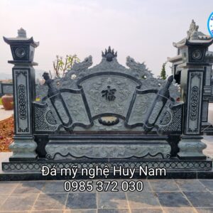 Công ty TNHH Đá mỹ nghệ Huy Nam giới thiệu đến quý khách hàng Mẫu cuốn thư đá đẹp CT-012 tại khu lăng mộ đá Đẹp. Do chúng tôi tư vấn, thiết kế, chế tác và vận chuyển lắp đặt cho khách hàng. Mẫu cuốn thư này được chế tác bằng chất liệu đá xanh tự nhiên chất lượng cao, loại đá tốt nhất hiện nay. Cuốn thư có dạng đặt sau cổng ra vào khu lăng mộ có tác dụng che chắn những luồng khí xấu bên ngoài xâm nhập vào khuôn viên lăng mộ.